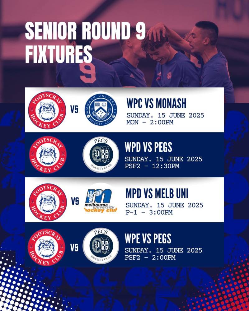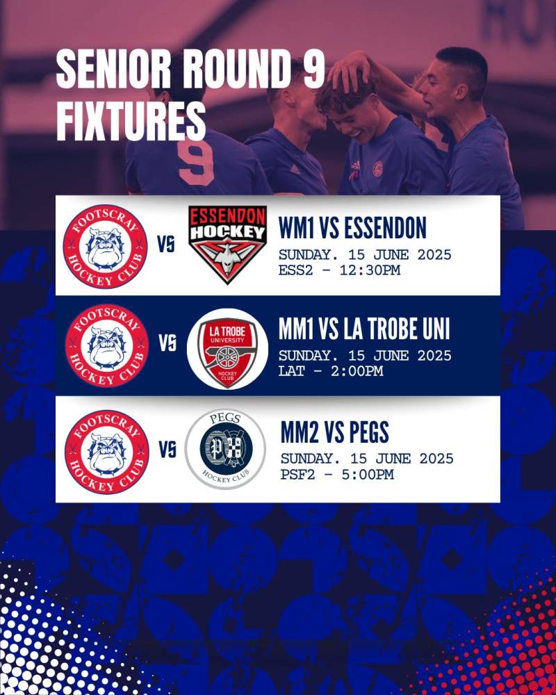 SENIOR ROUND 9 FIXTURES π Jun 14, 2025 Hockey action continues this weekend! Check out the weekendβs senior fixtures. Letβs go doggies! #fhc #footscrayhockey #hockeyvictoria #hvpremierleague