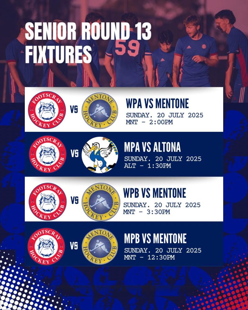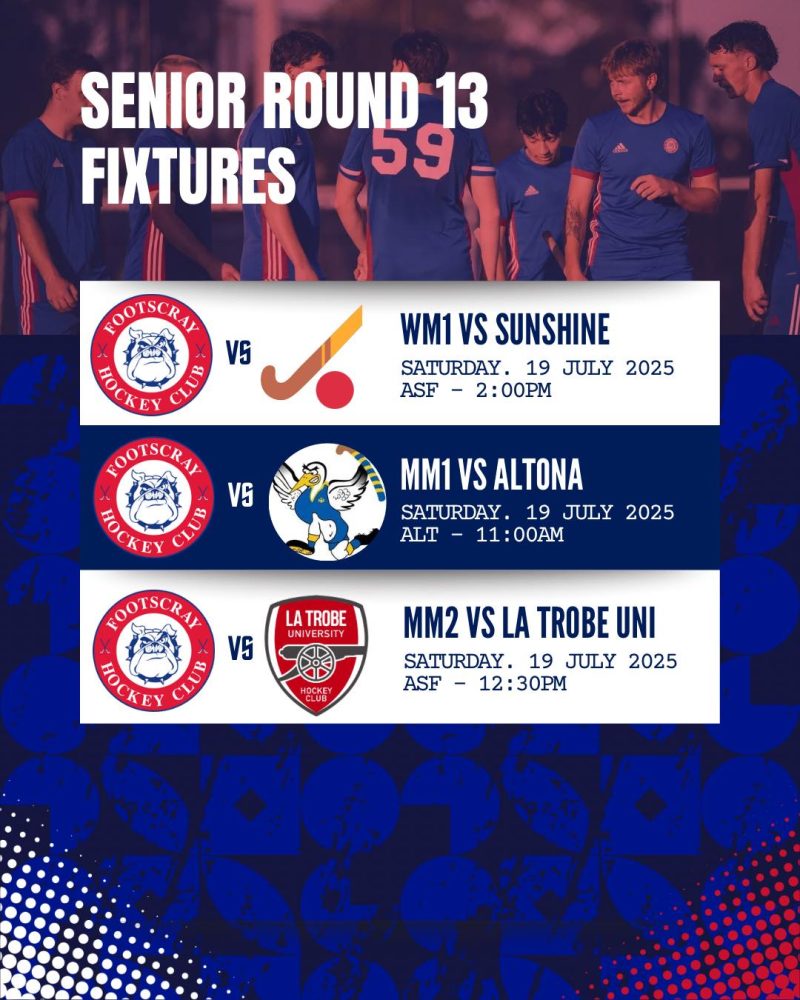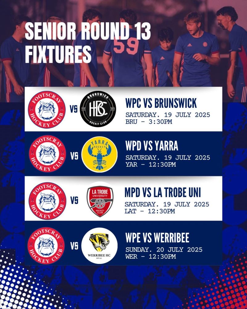 SENIOR ROUND 13 FIXTURES Jul 19, 2025 Senior hockey is back on this weekend! Good luck to all our senior teams this weekend. Let’s go doggies! #fhc #footscrayhockey #hockeyvictoria #hvpremierleague