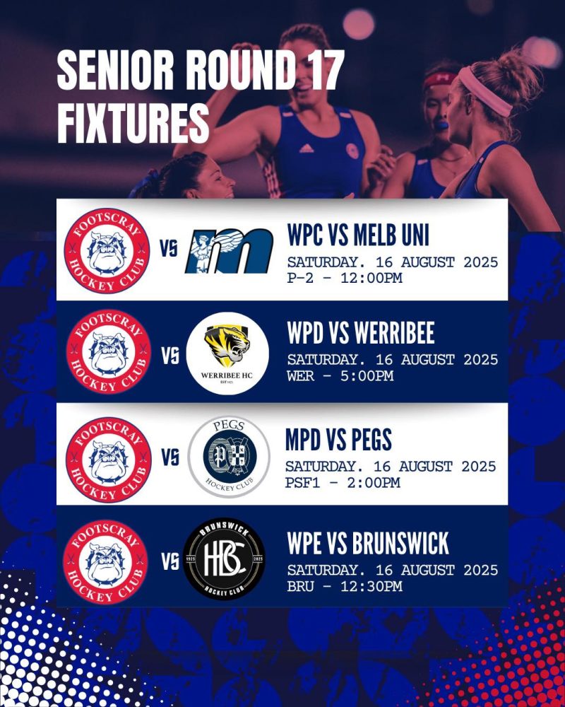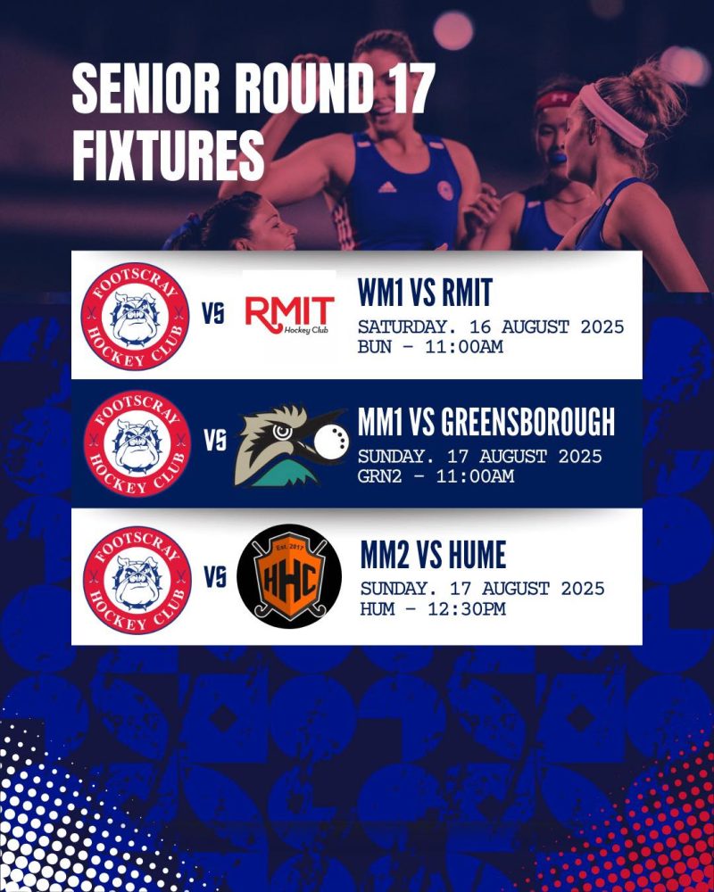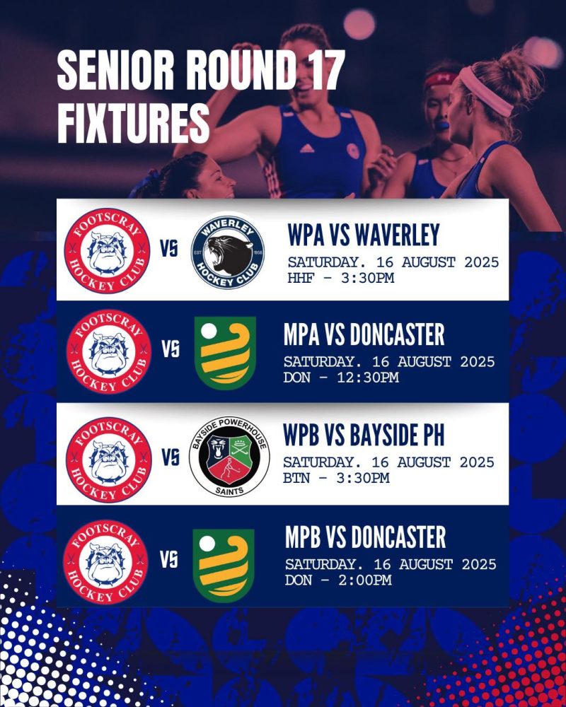 SENIOR ROUND 17 FIXTURES Aug 16, 2025 We are getting close to the end of the regular season! Wishing all our senior teams the best this weekend. Check out the weekend’s fixtures #fhc #footscrayhockey #hockeyvictoria #hvpremierleague