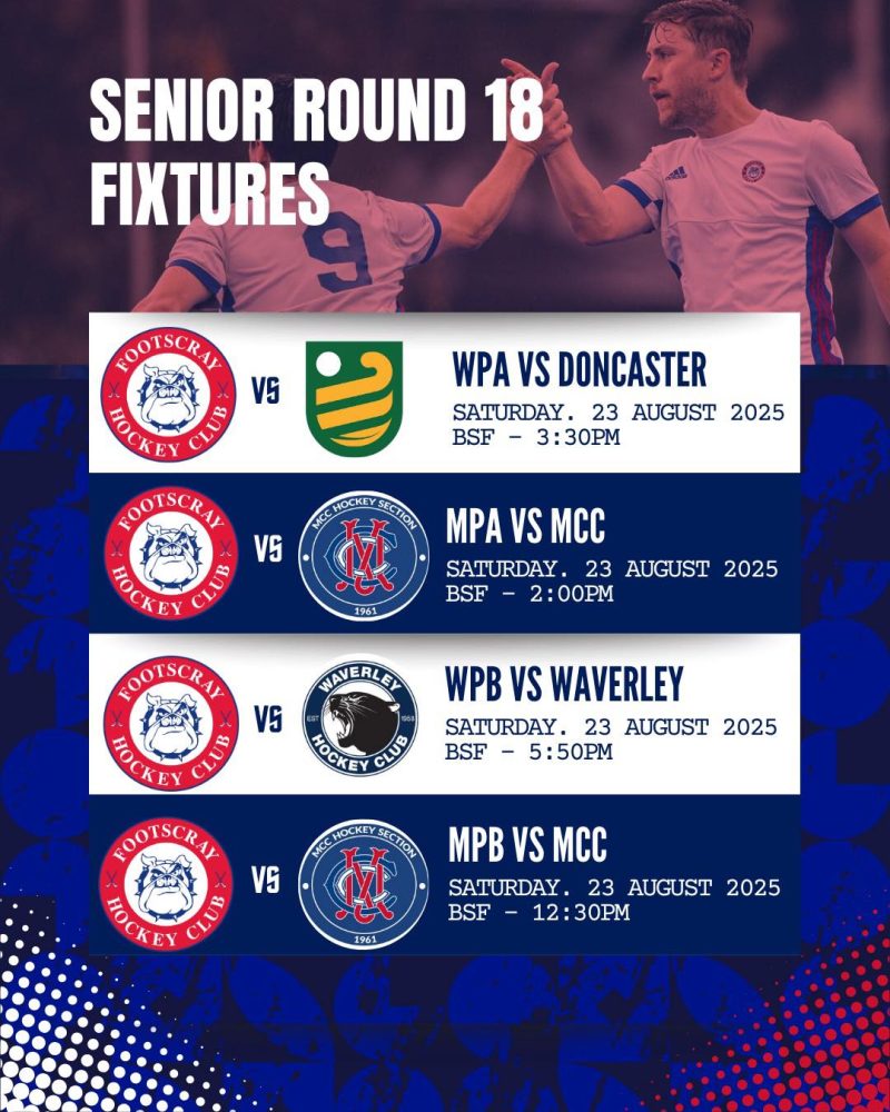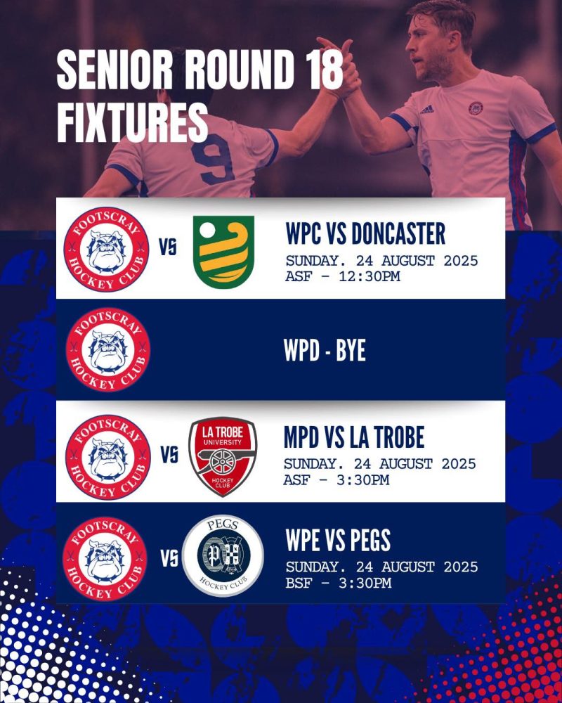 SENIOR ROUND 18 FIXTURES Aug 23, 2025 It’s the final round of the regular senior season and it’s a pack schedule at The Kennel. Get on down and show your support! Let’s go doggies! #fhc #footscrayhockey #hockeyvictoria #hvpremierleague